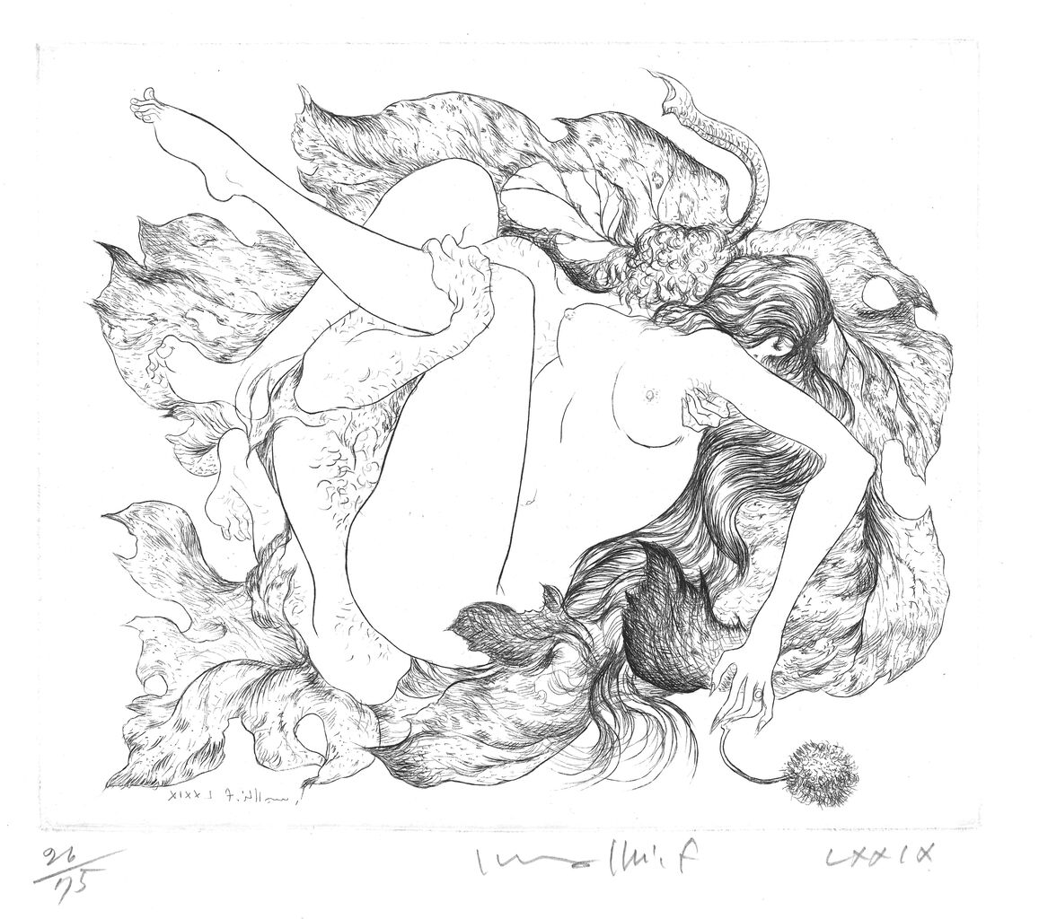 古沢岩美《アカンサス》 古沢岩美銅版集『誘惑』より1979年 銅版(刷り 宮下登喜雄)