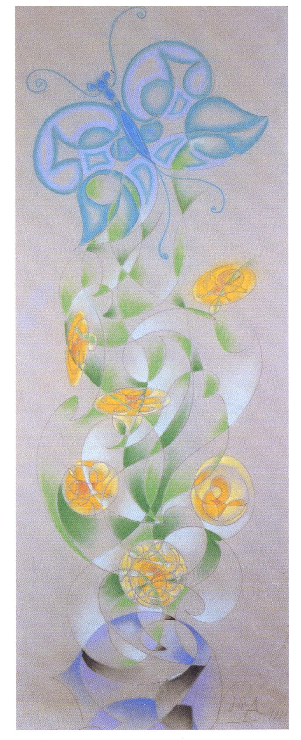 図5:バッラ《蝶-花Farfafiori(襟巻きのための図案)》、1920年(紙に鉛筆とパステル、124×49.5cm、ビアジョッティ=チーニャ財団、グイドーニア)