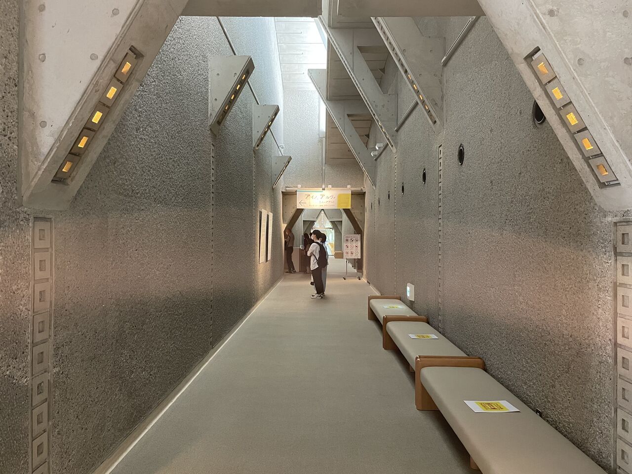 順路が、従来の、受付を通過後にサンクンガーデンに面した通路を渡って展示室に入る動線ではなく、受付通過後にミュージアムショップを経由し、収蔵庫と展示室に挟まれた通路を通って企画展示室に入る動線の体験は、少し違和感があるものの、新鮮さと建築の柔軟性を感じるものでした。