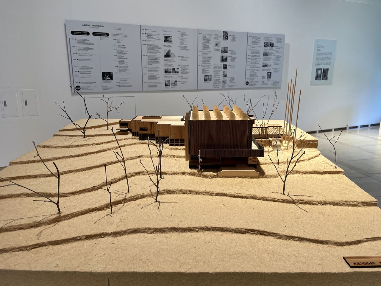 1938年にニューヨークMoMAでアルヴァ・アアルトの個展が開かれ、1939年に第七章で展示された「ニューヨーク万国博覧会フィンランド館」が完成します。アメリカでのキャリアを視野に入れていた矢先に戦争が起こりました。第七章の「ベイカーハウス学生寮」もアメリカの仕事です。