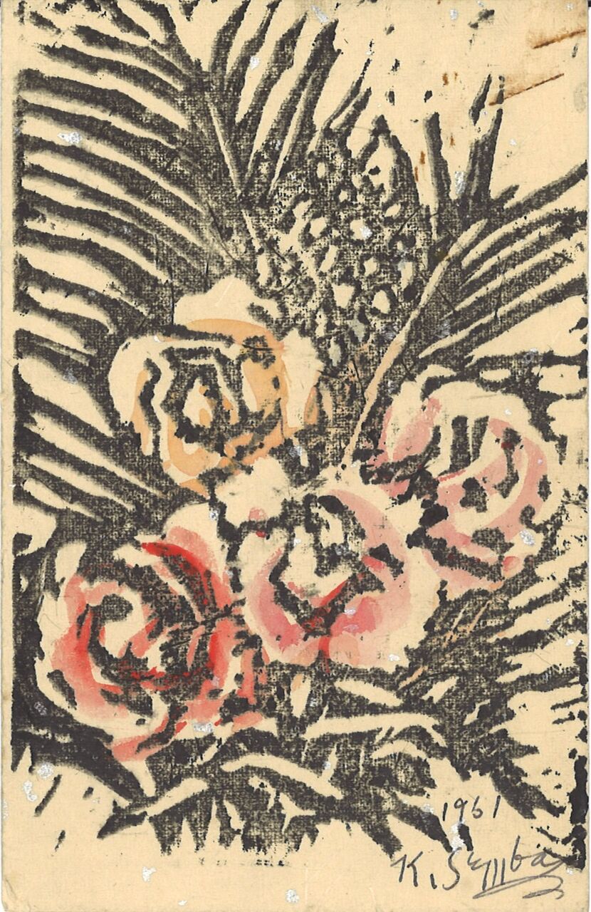 ・宮本徳太郎氏にあてたカード作品。当時の封筒付き。