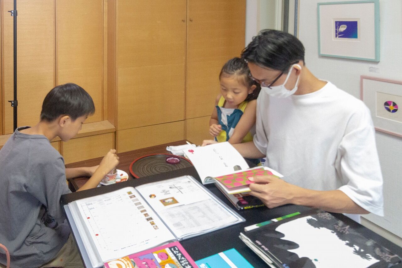 熊谷守一と五味太郎の版画27点とたくさんの絵本、冷たいお茶を用意してお待ちしています。