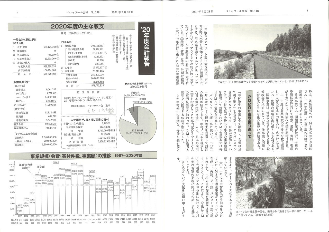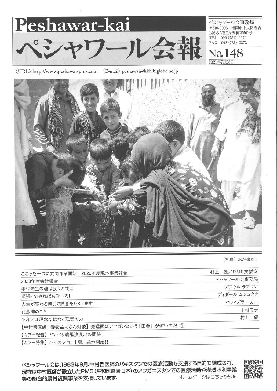2019年12月4日中村哲医師がアフガニスタンで銃撃され亡くなられました(享年73)。ペシャワール会とアフガニスタン現地での復興事業は大きな打撃を受けましたが、中村医師のあとを村上優会長が引き継ぎ、灌漑事業などの継続に全力を挙げています。ペシャワール会から会報148号が届きました。