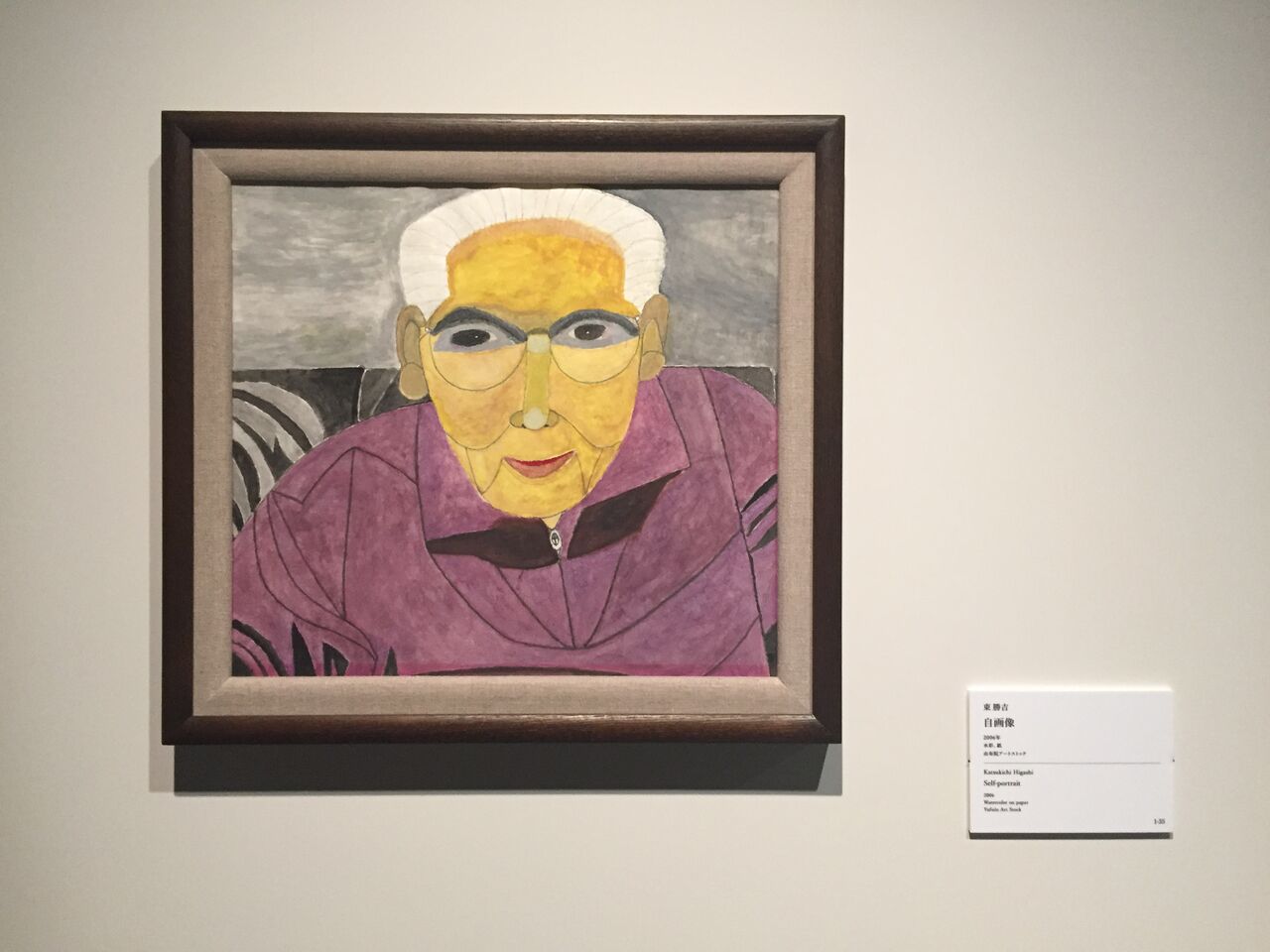東勝吉は、83歳からの余生16年間、湯布院をはじめとする郷土の四季を対象にした水彩画を描きました。パッチワークか刺繍のようにも見える色彩とタッチで捉えた自然の風景画が並ぶ中、晩年の自画像が印象的でした。当時、特別養護老人ホームの集団生活の中で、利用者の個性を育んだり、自己表現を促す活動が継続されていたというのは簡単なことではないと思います。