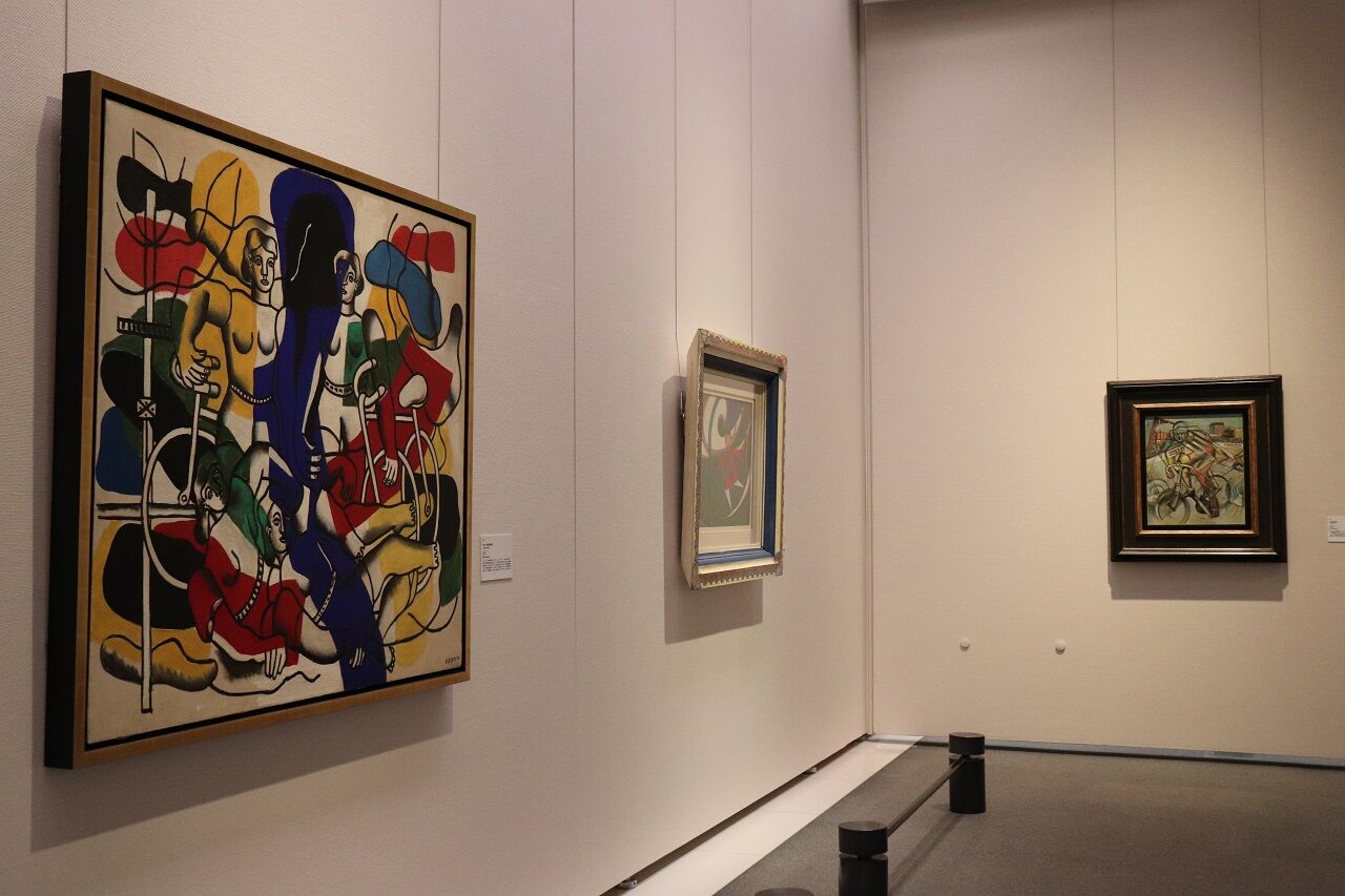 自転車と美術を考える上で、本展では特に「動きの表現」と「機械美」に注目した。キュビスムのジャン・メッツァンジェや未来派のジャコモ・バッラの作品は「動き」の表現の好例である。メッツァンジェの〈自転車乗り〉(1911-12年)は、ツール・ド・フランス(1903年~)やジロ・デ・イタリア(1909年~)が始まった頃の自転車競技の様子である。そして、「機械美」という新たな価値観を20世紀美術にもたらしたレジェは、第二次世界大戦中のアメリカ滞在期に、自転車に乗る活発な少女たちに触発されて〈美しい自転車乗り〉(1944年)を描いた。