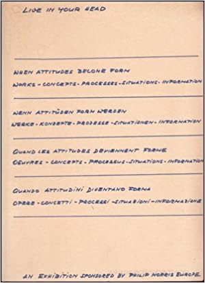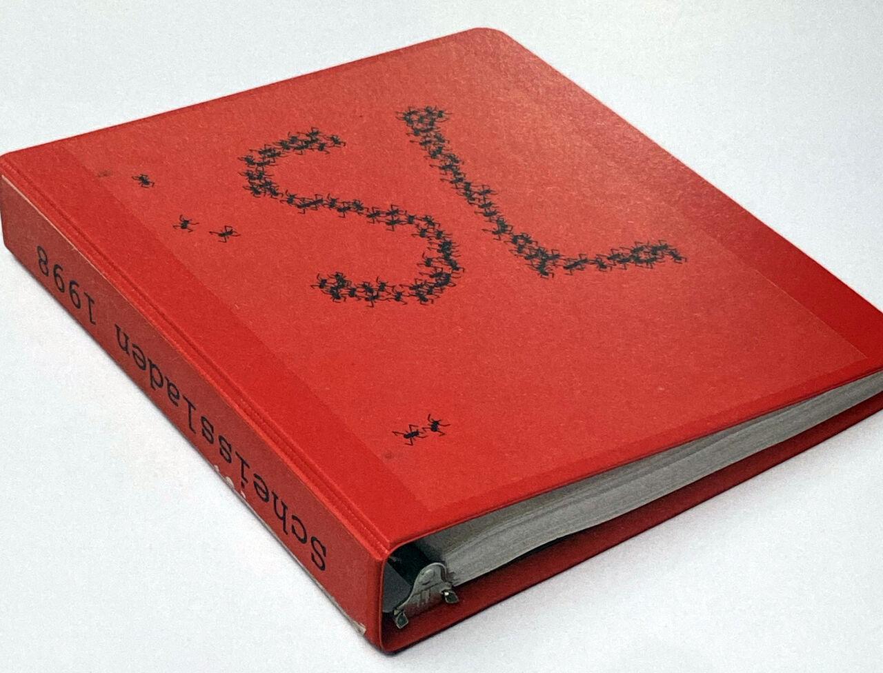 この画像を見ていただいて、「あは~ん」と思って頂けた方は、かなりの美術書通だと思います。はい、1994年のカタログは、スイスの伝説的なキュレイター、ハロルド・ゼーマンが1969年に企画した展覧会、「When Attitudes Become Form」のカタログデザインを模したもの。また、小さな蟻でスティーブンのイニシアル、SLを描いた1998年のバインダーの表紙は、1972年に開かれた、やはりゼーマンが企画を担当して「第五回カッセル・ドキュイメンタ」のカタログデザインを「引用」したものだったのです。