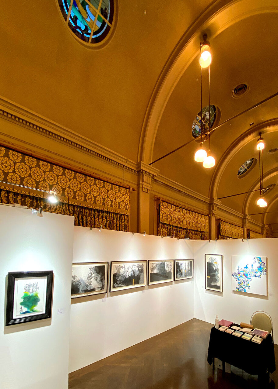 このたび、大阪・中之島にある中央公会堂で開催されたART OSAKA 2021の「ときの忘れもの」ブースにて個展を開催し、大変貴重な体験をさせてもらいました。歴史感じる上品な空間と幻想都市風景が響き合い、自分が描いたドローイング作品たちが独特な表情を獲得していたことに、興奮しました。やはり、絵は飾られる場所の空気と同化的になることを再確認しました。