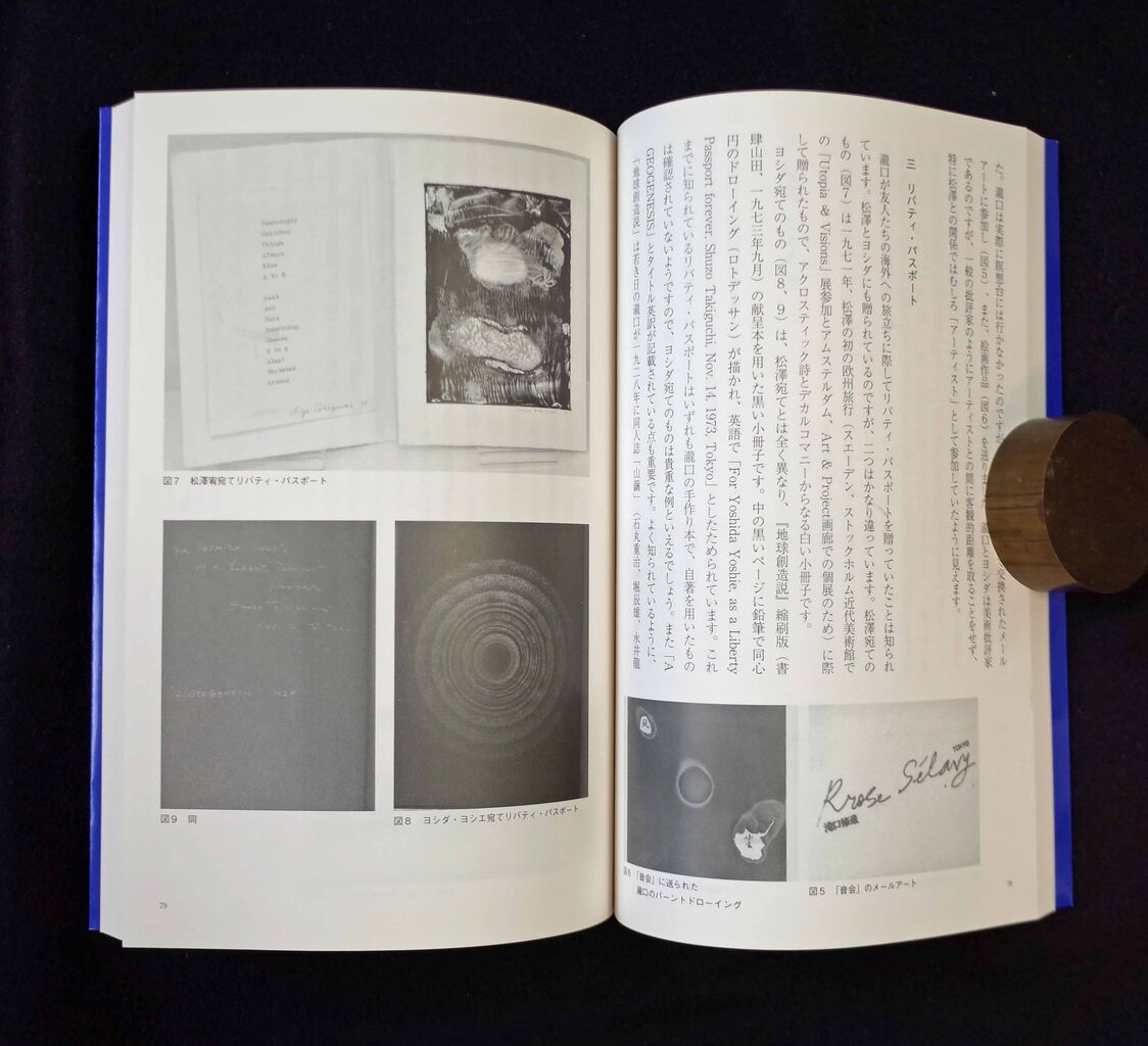 図27以上のように、『地球創造説』は、『瀧口修造の詩的実験 1927~1937』に続く瀧口2冊目の詩集で、すでにそれだけで貴重な本であることは間違いありませんが、さらに若き日に試みた「詩的実験」から晩年のマルセル・デュシャンやリバティ・パスポートに至るまで、瀧口の生涯の主要な出来事や人間関係などとの関りをもっている点で、独自の存在意義を有する1冊です。刊行から半世紀近く経過した現在では、古書市場での価格は当初の定価よりも高くなってはいますが、縮刷版であれば比較的容易に入手できますので、是非とも蔵書に加えられ、黒紙に墨インクの効果を実際に体験されるようお勧めします。