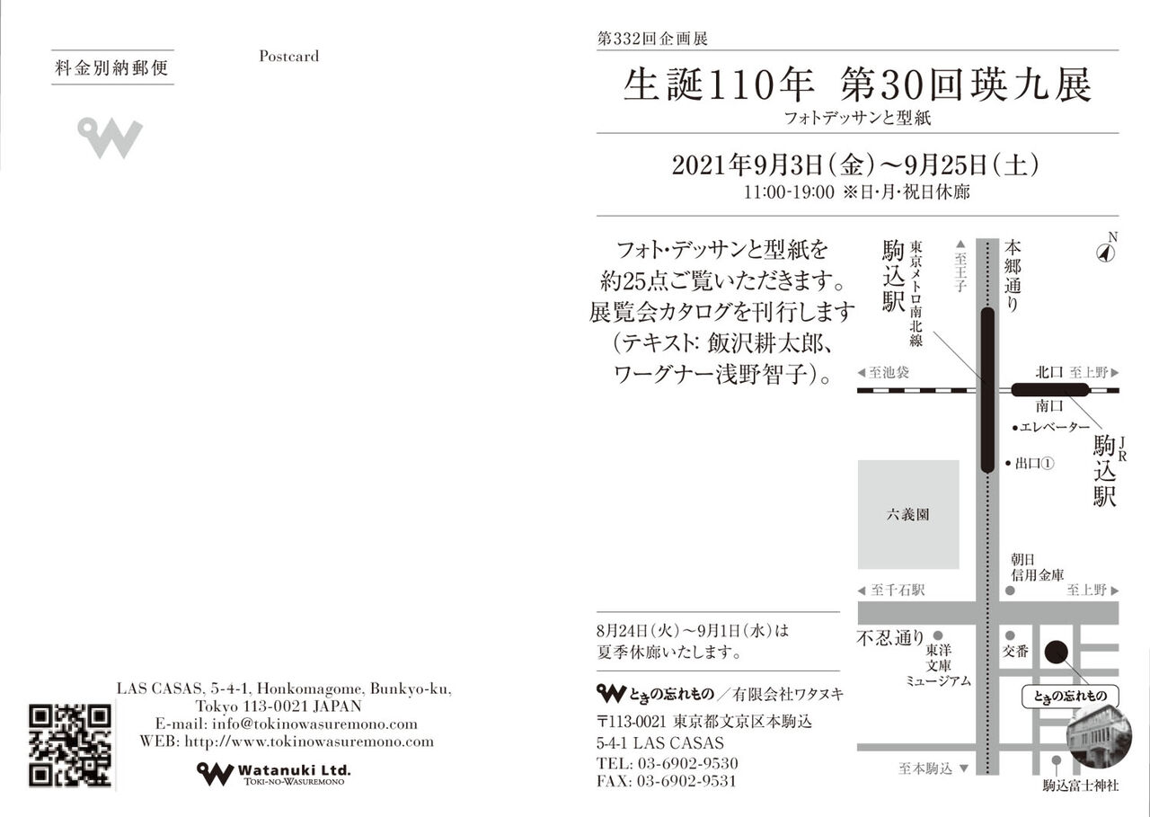 瑛九展ポスター(裏)●ときの忘れものは2017年に青山から〒113-0021 東京都文京区本駒込5丁目4の1 LAS CASAS に移転しました。もともと住宅だった阿部勤設計の建物LAS CASASを使って、毎月展覧会(Web展)を開催し、美術書の編集事務所としても活動しています。