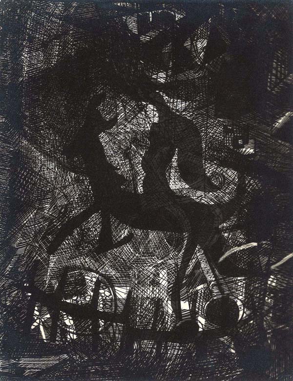 *鈴木素直氏旧蔵/10点組の内、出品は9点のみ/水害に遭って傷んだ『眠りの理由』(9点)は、瑛九が宮崎から浦和に引っ越す際、高校生らを相手に、アパートに残されたものの頒布会を行なったおりに鈴木素直氏が購入したものである。