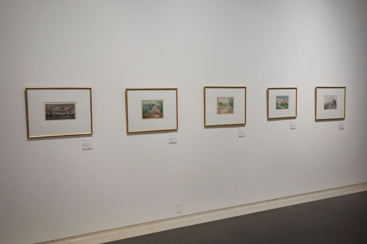 左から『アレキサンドル三世橋とフランス飛行船』(1930年)、『キャンベルの古い橋』(1922年)、『ムードンの陸橋』(1921年)、『ラ・コル村風景』(1928年)、『ジゴン古村の礼拝堂』(1938年)