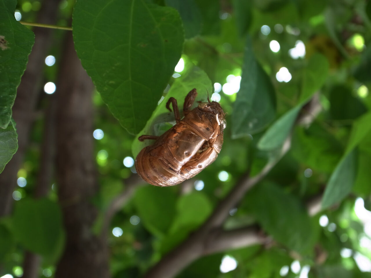 桂の木でセミの抜け殻を見た。