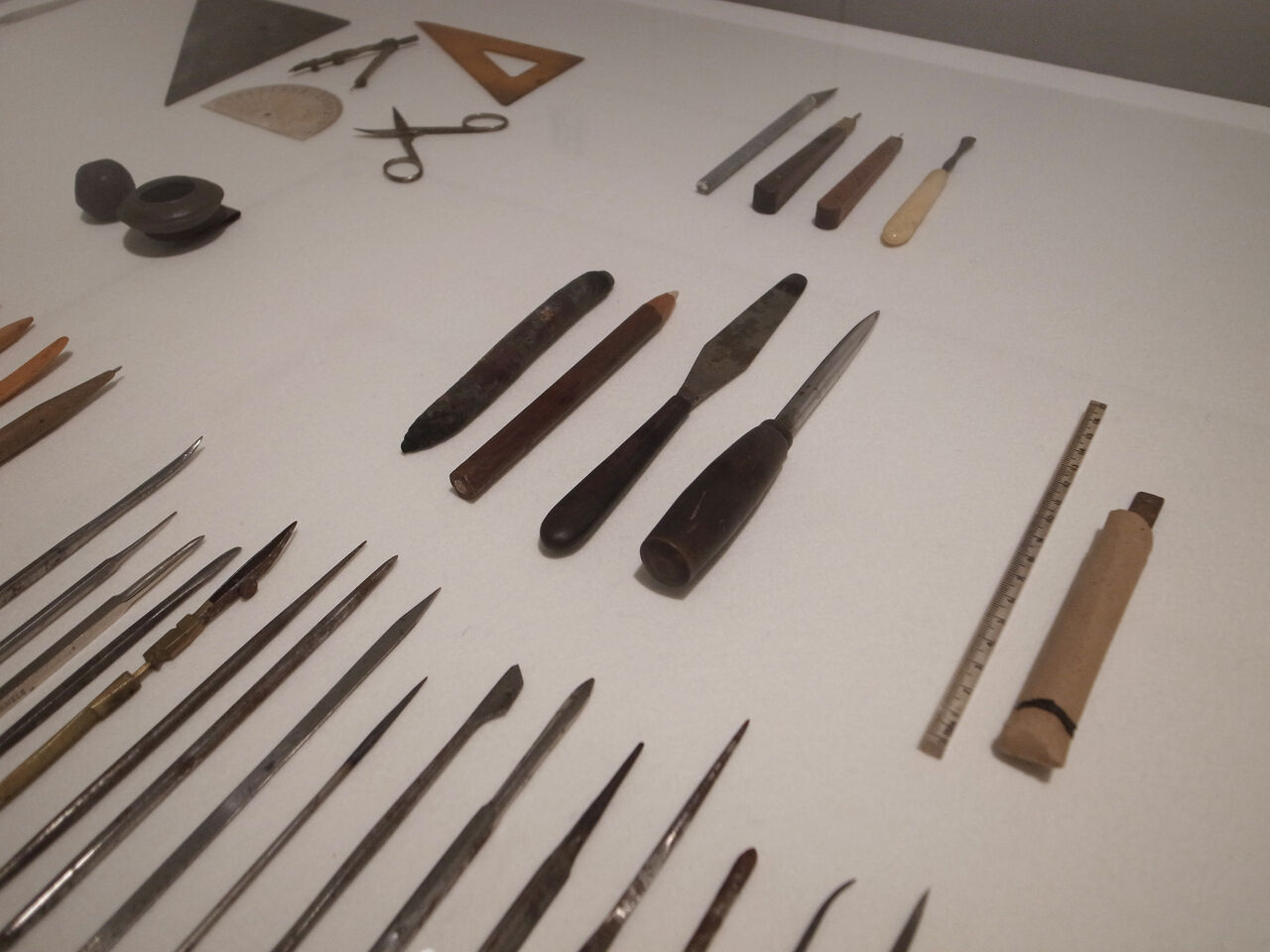 長谷川潔使用 銅版画用道具コロナ禍と大雨に悩まされたこの夏にあって、京都国立近代美術館(以下、京近美)のコレクションルームで拝見した『長谷川潔の版画』展示は、清楚な空気に包まれ、観る者の背筋を伸ばさせてくれる良い企画だった。個人的に作品と作者に初めてお会いしたと打ち明けたい気持ちである。