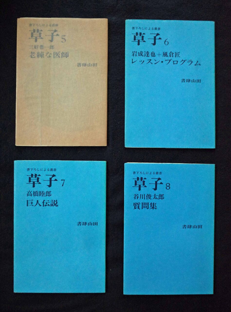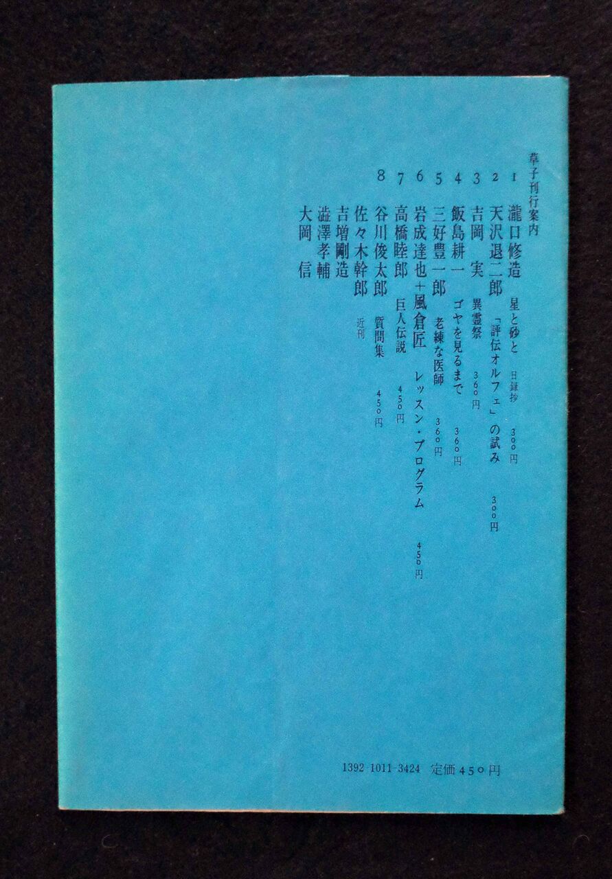 刊行時のスリープ裏面には「草子刊行案内」として、本書以下、「2吉増剛造 近刊 3飯島耕一 4大岡信 5吉岡実」と記されていますが(図10)、実際に刊行されたのは、以下のラインナップです(図11,12)。