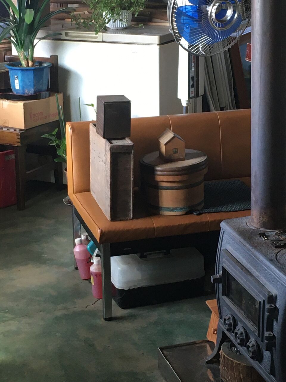 (古道具屋で購入したハコ。特に、イエ型の貯金箱の佇まいがとても気になった。)