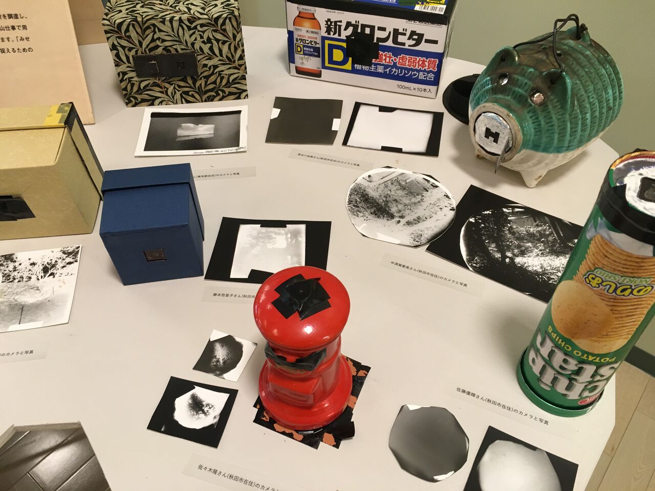(秋田市文化創造館のピンホールカメラ作りワークショップでの、参加した方々による制作物。)