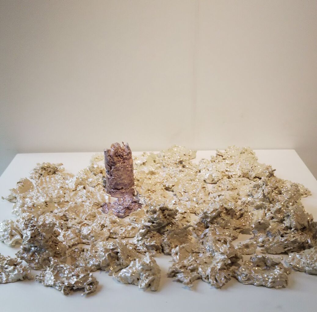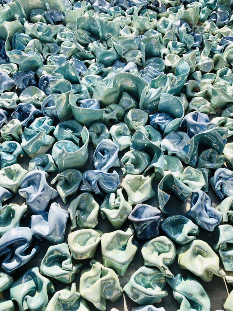 今回展示される新作は、シュレッダーによって「消された記憶」が泥漿と混ぜ合わされ、焼成されて、まるで沸き立つ海のような形象が出現します。
