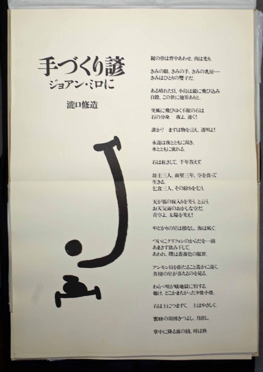 2) 1961年の富山訪問:10月8日、富山市公会堂で開催された第15回全国造形教育大会で、講演「今日の美術―オブジェを中心として」を行う。その後、母校富山高校に回り、在校生に向けに「美というもの」と題し講演。詳細は土渕信彦企画・構成「瀧口修造の光跡Ⅰ 美というもの」展図録(森岡書店、2009年7月。図16)所載の「講演記録」付記を参照。