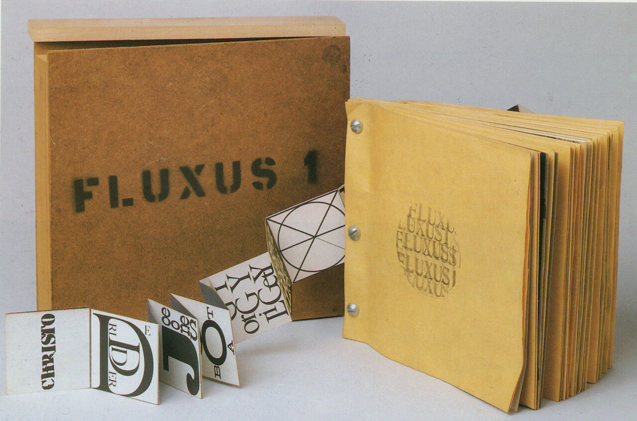 活動内容は、音楽、詩、美術、映画、演劇など数々のメディアを横断するもので、マチューナスを中心に、イヴェントの開催やマルチプルの制作、フルクサス新聞の発行など、人種や国境を越えて広く世界で展開されました。《フルクサス1》《フルクサス・イヤー・ボックス》《フルックスキット》など、フルクサスのアーティストの作品をボックスにまとめて、エディションを作り出版するなど、フルクサス独自の形で作品を世に送り出したのも大きな特徴です。