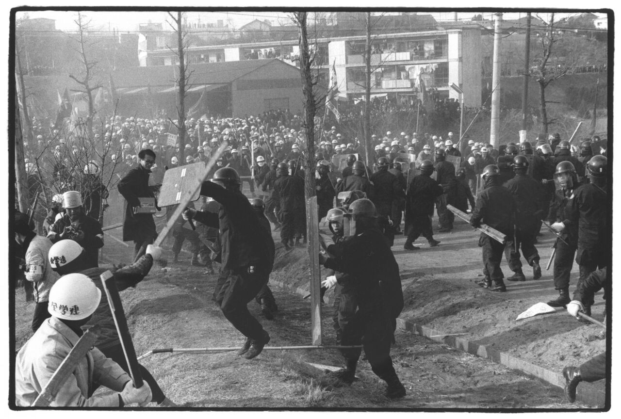 手前の黒いヘルメットは機動隊、その後ろの白ヘルは全学連。