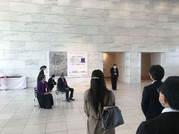 「生誕110年記念 瑛九展-Q Ei 表現のつばさ-」内覧会には、コロナ禍でもあり招待客は50名ほどが出席し、開会式が催されました。学芸員の小林美紀先生による解説とともに作品を堪能してきました。