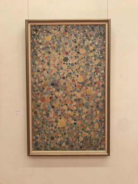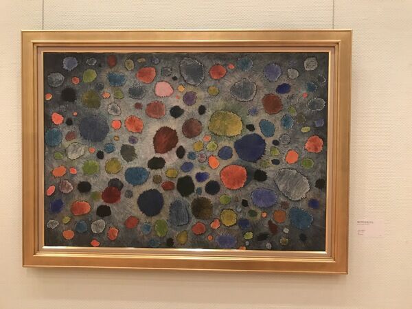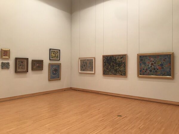 最後は光り輝く点描画が展示された一室。個人的に好きな小石のような斑点から、アメーバーのような斑点、画面から飛び出そうとしている斑点や、小宇宙に浮遊している斑点など、さまざまな斑点が描かれた点描画が掛けてあり、どれも心に響く美しい作品群でした。