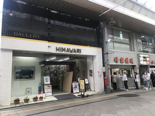そろそろ帰ろうと駅に向かって商店街を歩いていたところ、「蜂楽饅頭」の行列が目に入り(九州人はご存知の方も多いでしょう、関東でいう今川焼きのお店です)、懐かしくて自分用に購入。ふと隣を見たら、中村さんのエッセイに載っていた「ひまわり画廊」を発見! 焼きたての蜂楽饅頭をバッグに押し込み、お店の方にご挨拶。少しお話を伺い、帰路につきました。