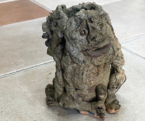 ところが、伊藤先生は飄々と悪条件を乗り越えた。《起土》は、アトリエの土捨て場の粘土が凍結し、霜柱となって立ち上がる様子から構想された作品である。土中の水分は氷となって土を起こし、やがて蒸発して空へと消えていく。美術館に設置された《起土》は、作品全体が地面から緩やかなカーブを描き、私たちの視線を空に誘導する。作品のテーマと用途と形体を見事に一致させて問題を解決したのだ。
