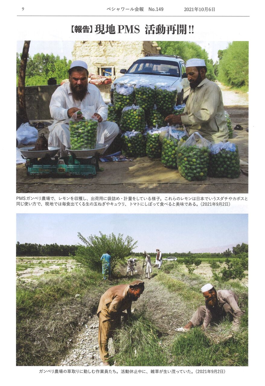 8月15日以降、現地PMSとは電話連絡に拠っていましたが、ようやく10月13日にオンライン会議が実施できました。PMS側は医療、農業、灌漑用水路、渉外、会計や総務などに携わるメンバー10名です。久しぶりに相互に顔を合わせ、メンバーが言葉では言い表せない困難を超えて揃っていることに感謝しました。職員には少数民族の出身者もおり、警戒を全て解くには至っていませんが、タリバンへの恐れは減じてきたようです。カブールでの様子を報告し、経済封鎖のために失業者が増えている現実、パン(ナン)を買いに行くと子供たちが寄ってきて「ナンを」と手を差し伸べるのが切なく悲しいと話していました。