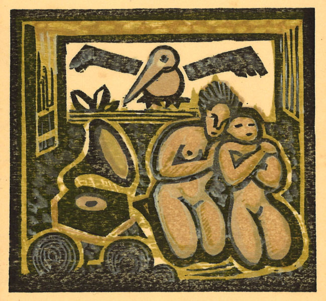 綿貫不二夫に教えられて、この木版画家を知った。日本のいちばん厳しかった時代の記憶、いや決して去ることのない現在。その空模様を、これから始まることを、追いつめられた写実で描いている。怖しい空。空からすべてが来た。描写力の精度に驚いて、ほかの作品も見せてもらった。空気や音をこれもまた同様な邂逅と逃避の眼で描いて、それ以外は何もかも消えている。(2021)