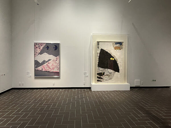 左: 現代津軽こぎん刺作家・貴田洋子《津軽・歓びの春》、右:戦前と戦後を繋ぐ女性芸術家のパイオニア的存在・桂ゆき《ゴンべとカラス》