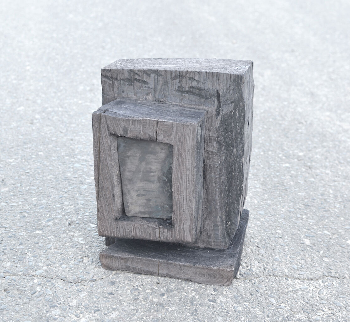 また、最近、個展準備とは別ものとして、ギャラリーせいほうの公募展に出展する小品を制作した。作り方は、クリと鉄を使い、鉄媒染を施しているので他の制作物と違いはあまりないが、家具としてのハコというよりはどちらかといえば何かしらの縮減模型のつもりで作ったものである。