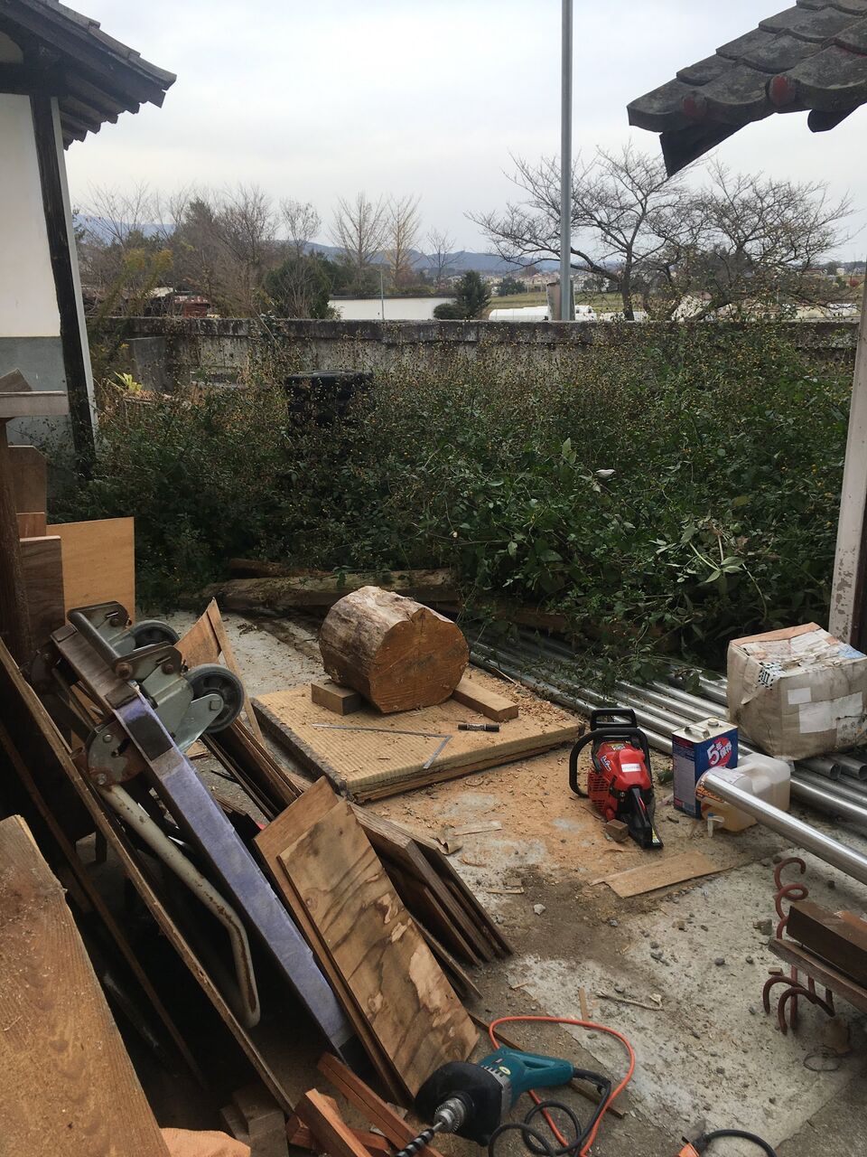 IMG_2213木工所の脇では半畳タタミを敷いて、材木を切り刻んでいる。