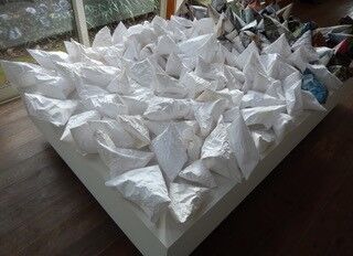 ところで、「襞」の思考は筆者の独自なものではない。昔の陶工は大きな器物をつくるときに手板に新聞紙を一枚敷いた。土の乾燥、収縮による歪みや割れを防ぐための知恵と習慣の工法だった。「褶曲」シリーズを始めたとき、見捨てられていたものを掬い上げ、無価値なものを新たな価値へと置き換え、「襞」の思考を深めようとしたのである。