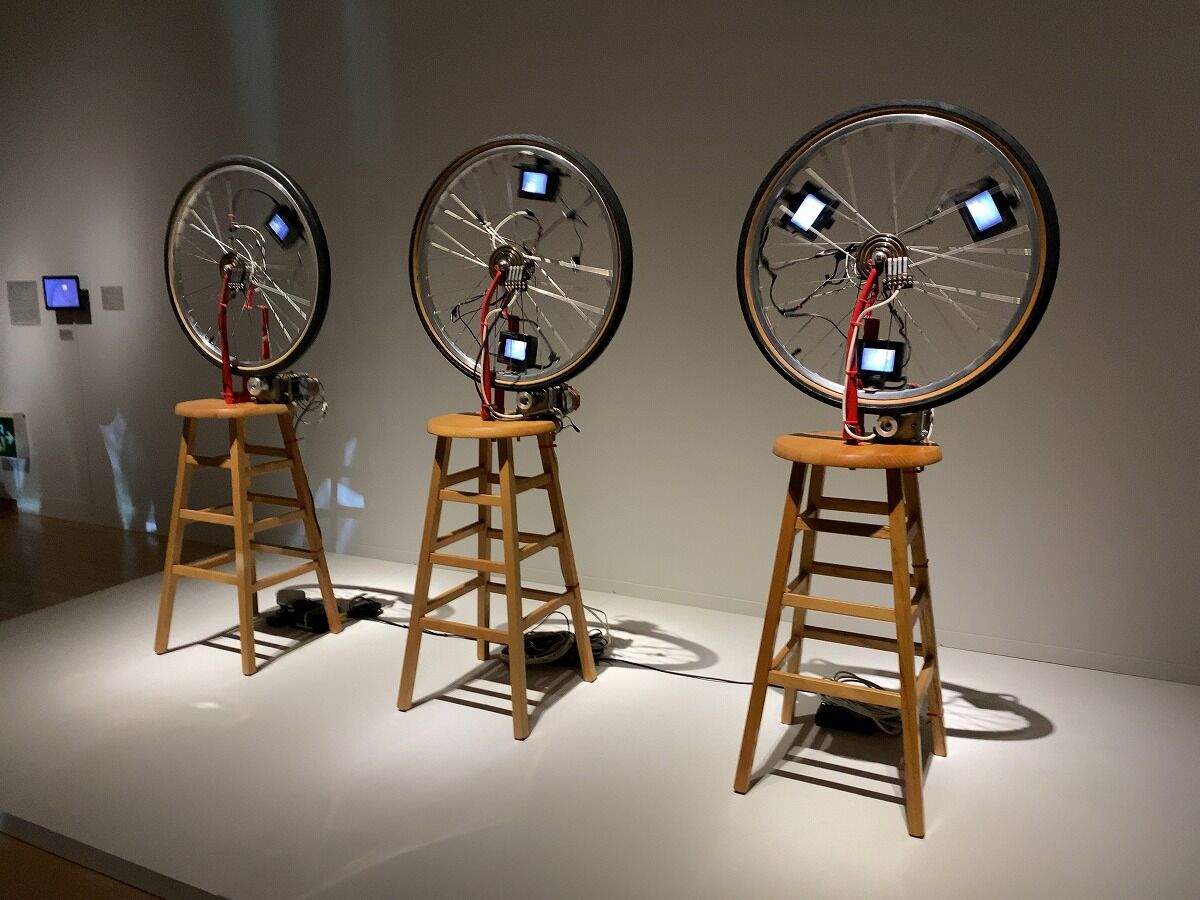 《デュシャンピアナ:自転車の車輪》1983-1990年制作。車輪がモーターで動きます!