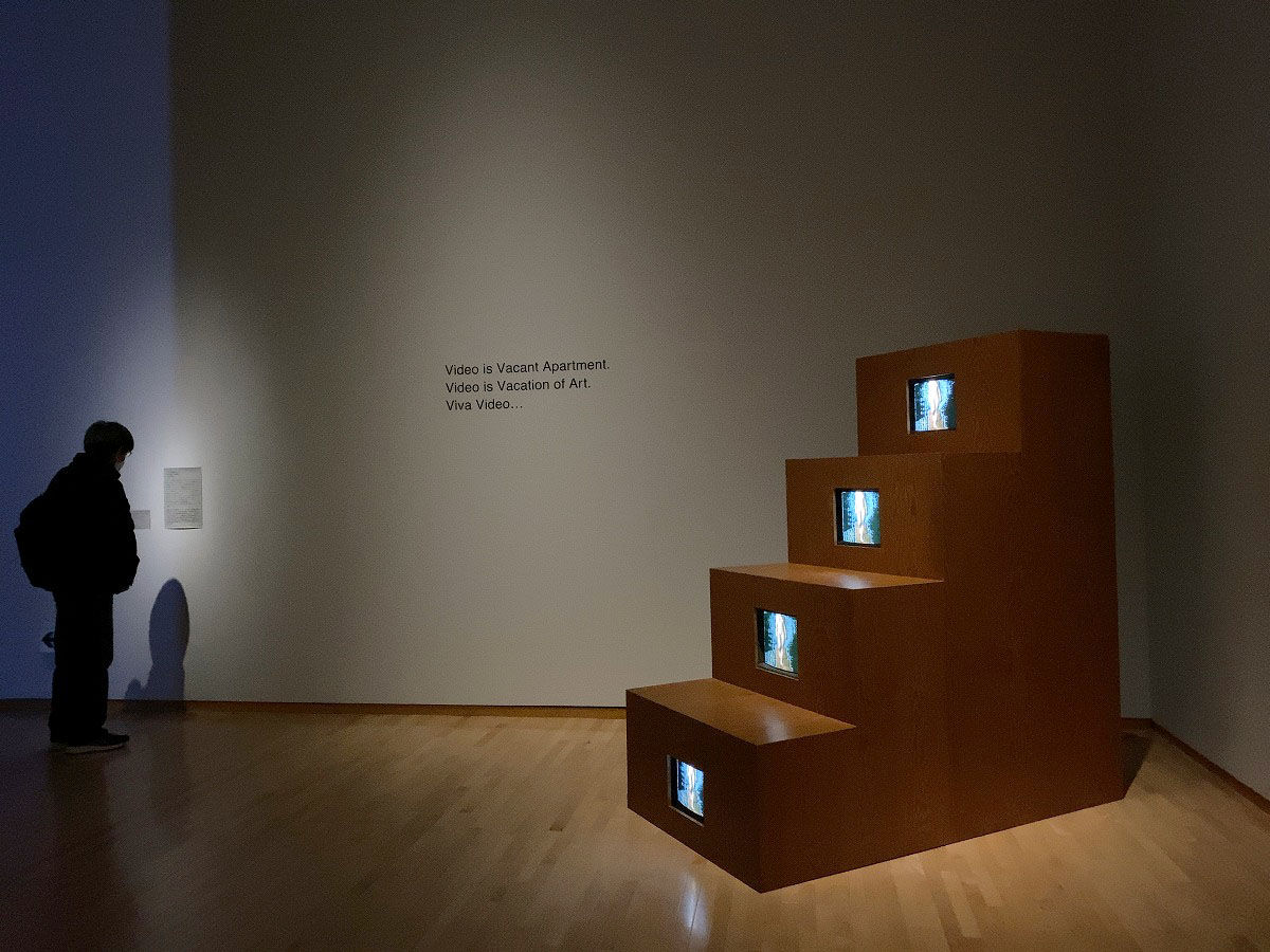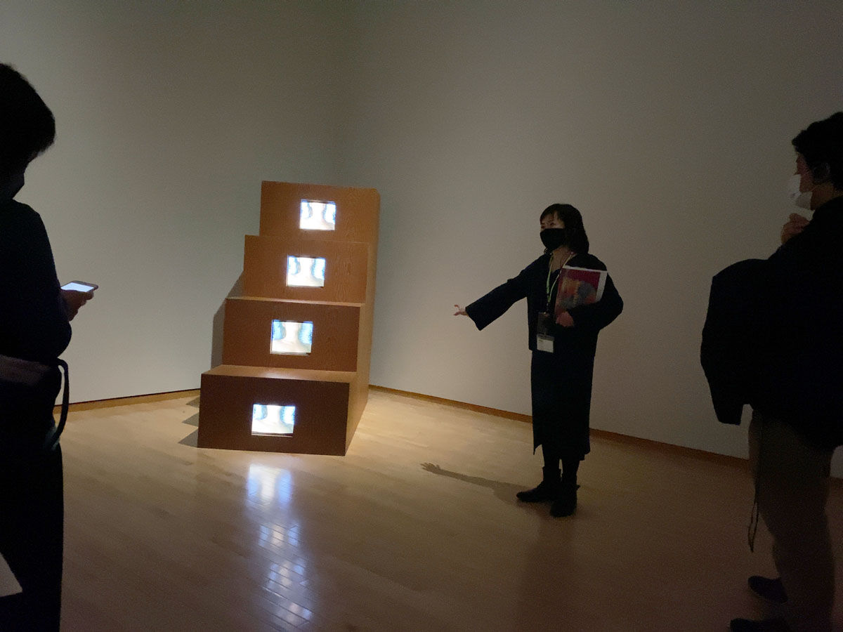 今回の出品作品のいくつかは、久保田成子ヴィデオ・アート財団が修復作業を行い、コロナ禍で作業が難しい中、1年以上をかけてようやく日本に運び込まれたそうです。その背景も知りながらヴィデオ・アートを見ると絵画を見るのとは違う視点の面白さもありますね。