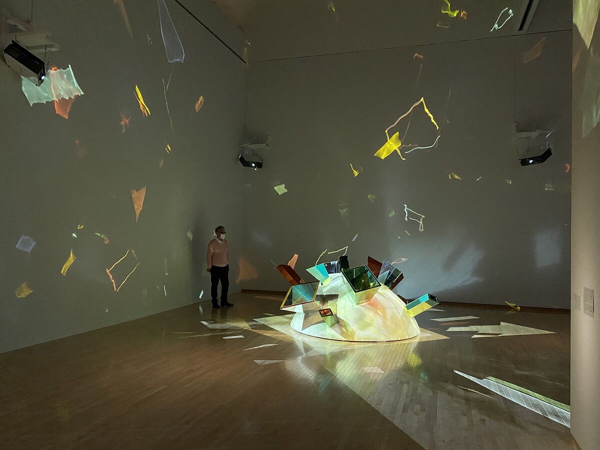 《ナイアガラの滝》1985年制作。(2021年に主要部分の修復が行われた)映像が鏡で反射して壁にも映し出されていて映像が切り替わるたびに色々な表情が見れる作品。きれいです。