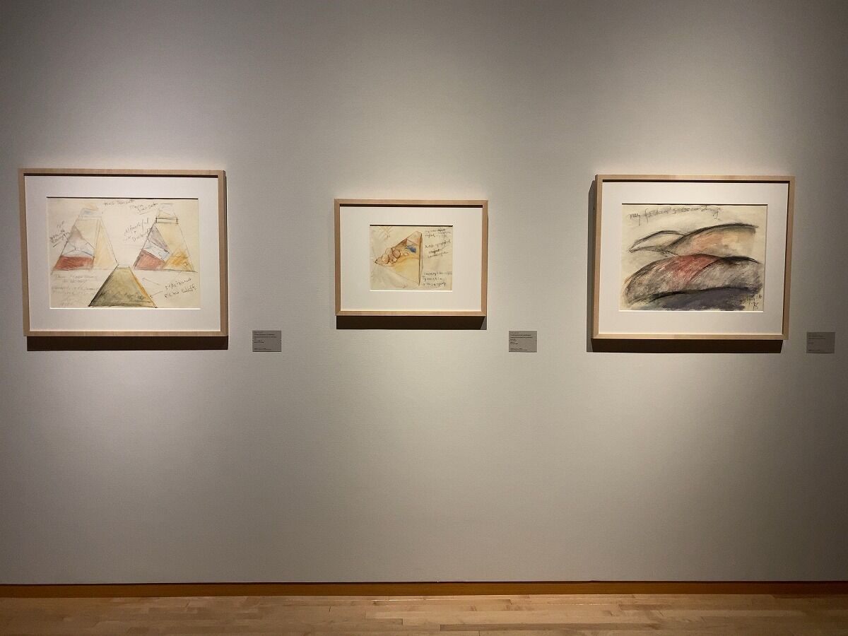 左は《三つの山》のドローイング。