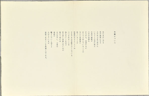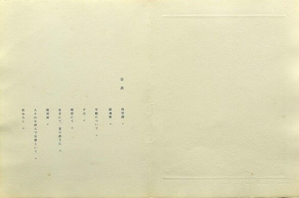 見開き5枚:表紙/夕立/厨房にて/食卓にて/夏の終わりに/人それを呼んで反歌という