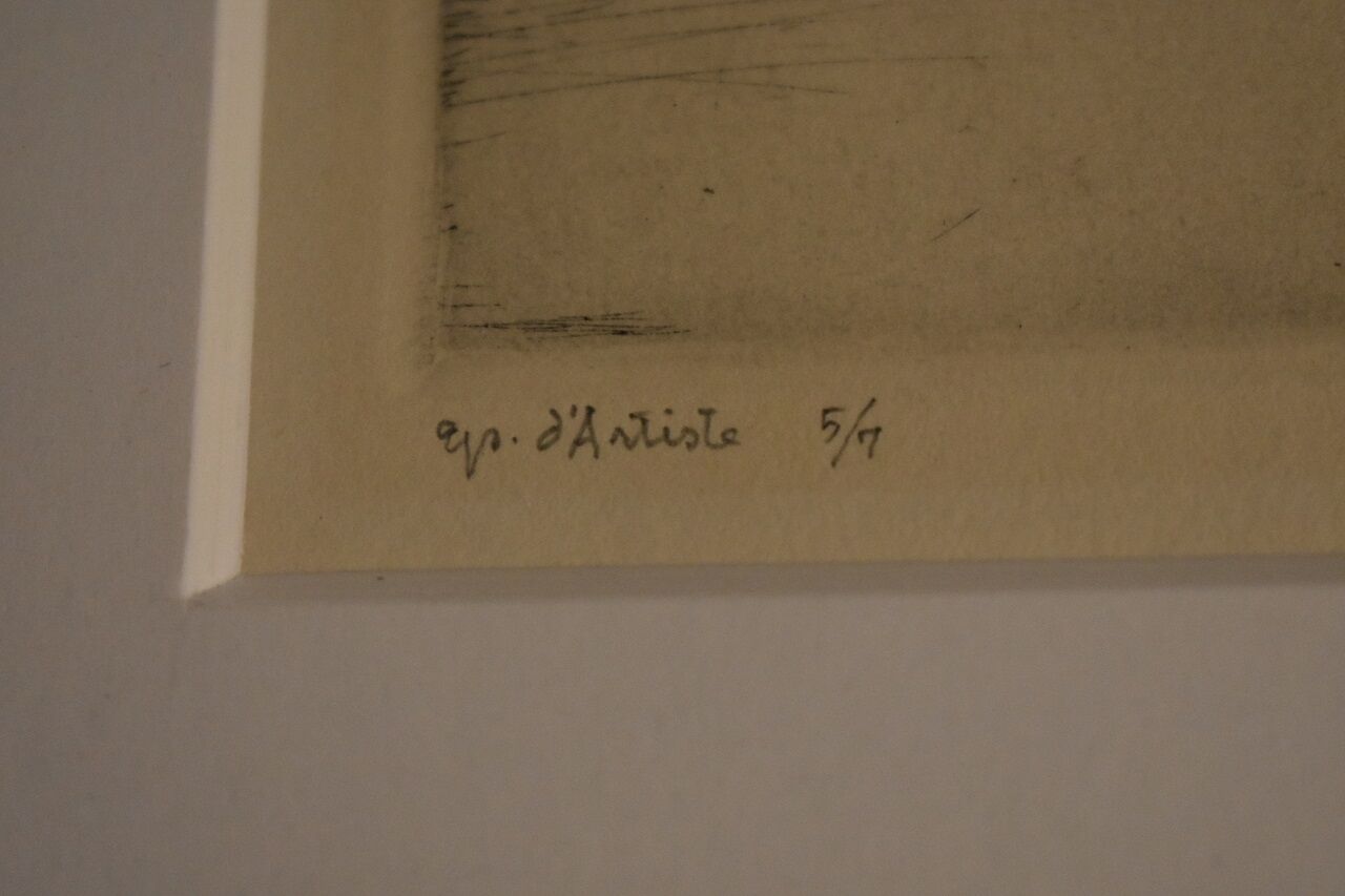 私は駒井の作品が欲しくて東京の知人に頼んで探して貰い、1991年の12月頃に東京銀座のギャラリー「ぼくの空想美術館」(画廊主の肥後静江さんはかつて洲之内徹の助手を務め共に暮らしたことのある方だそうである。)に作品があるという情報を得たが、それがこの「腐刻画」だった。ただし、刷りの状態が良くep.d’Artiste5/7の記入はあるが署名は無いという。西武百貨店の会長だった堤清二(詩人辻井喬の筆名を持つ)旧蔵とも聞いていた。作品との出会いは一期一会かも知れないし名作ならサインの有無は関係ないかも知れないが、詩画集の中の1点だけで50万円はさすがに高いと思った。しかし、作品を見てそれだけの値打ちがあると納得した。