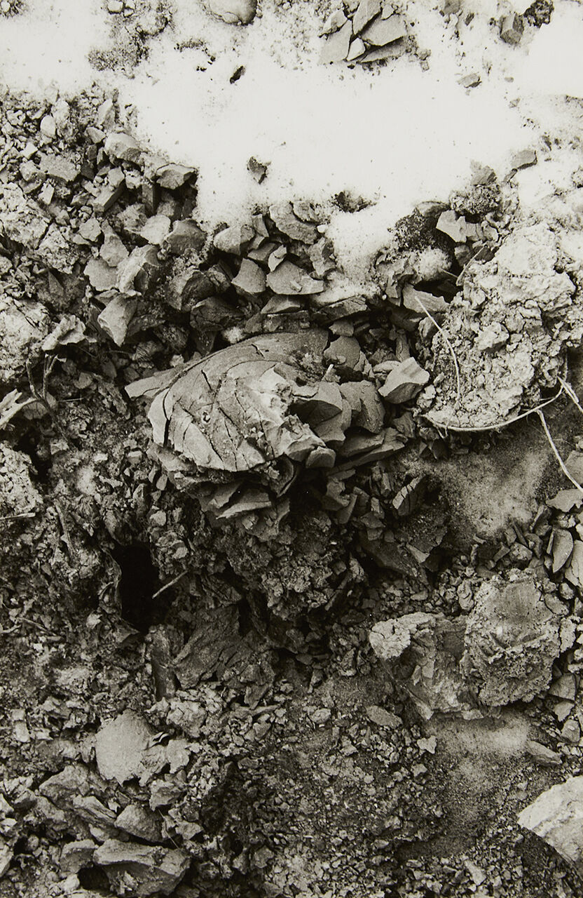 1983年のある日、電話がかかってきた。美術評論家、谷新氏からで、「来年のヴェネチアビエンナーレに出品推薦したいのだが、受けてくれますか ?」と。一瞬絶句、どう即答したかは覚えていないが受けない訳は無い。ヴェネチアビエンナーレに選ばれたのだ。そして咄嗟にひらめいたのは「土捨て場」の凍土だった。スコップで掘り起こした凍土の塊りは、塊りの中まで凍結し、それが溶けて伱間が出来ているので、高温焼成でも破損することはない。日本館の会場の床に46平方メートルに焼凍土を敷き詰める計画を立てた。土が起き上がり昇華する「起土」と題した。エロス(生成)を意図した「起土」「焼凍土」の誕生だった。