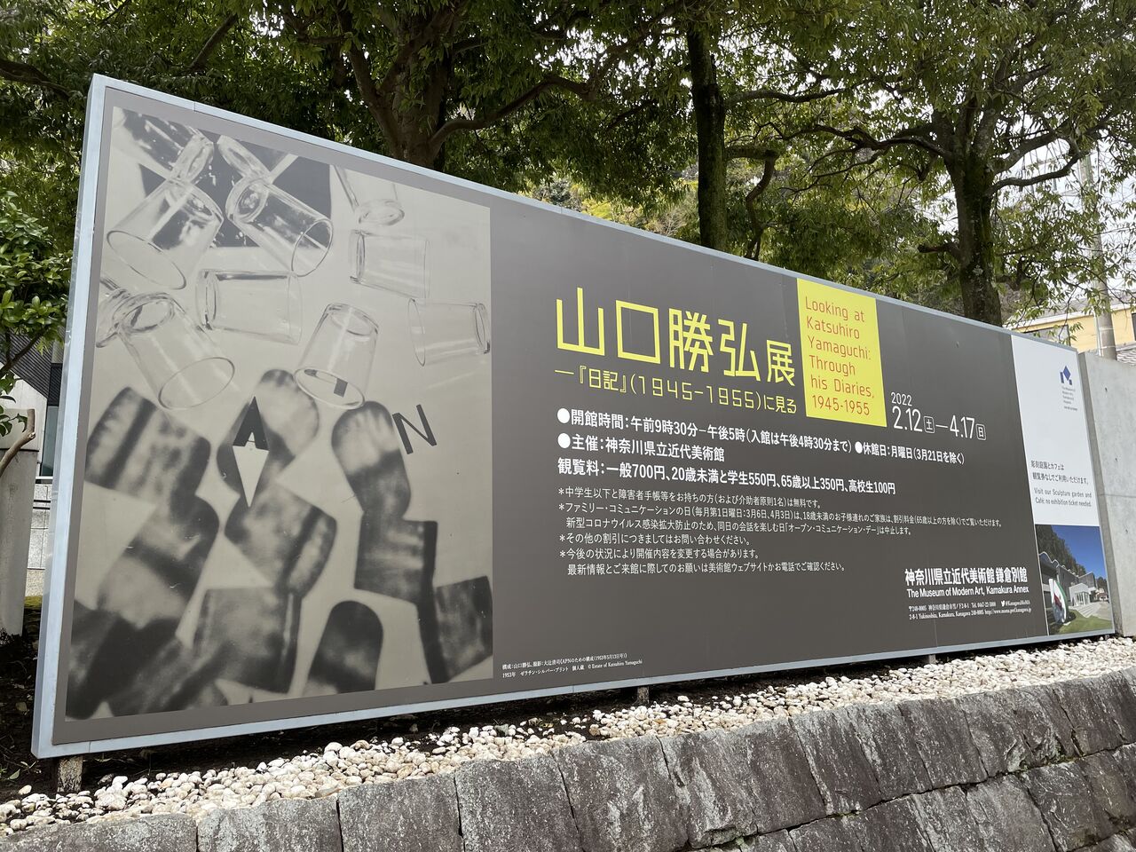 神奈川県立近代美術館鎌倉別館で、2022年2月12日から4月17日まで開催されている「山口勝弘展 『日記』(1945-1955)に見る」を訪れました。神奈川県立近代美術館鎌倉別館は、大髙正人の設計だということもありますが、コレクションをきっかけにして編まれる企画展から、訪れるたび学びがあり、内容に刺激を受ける美術館の一つです。