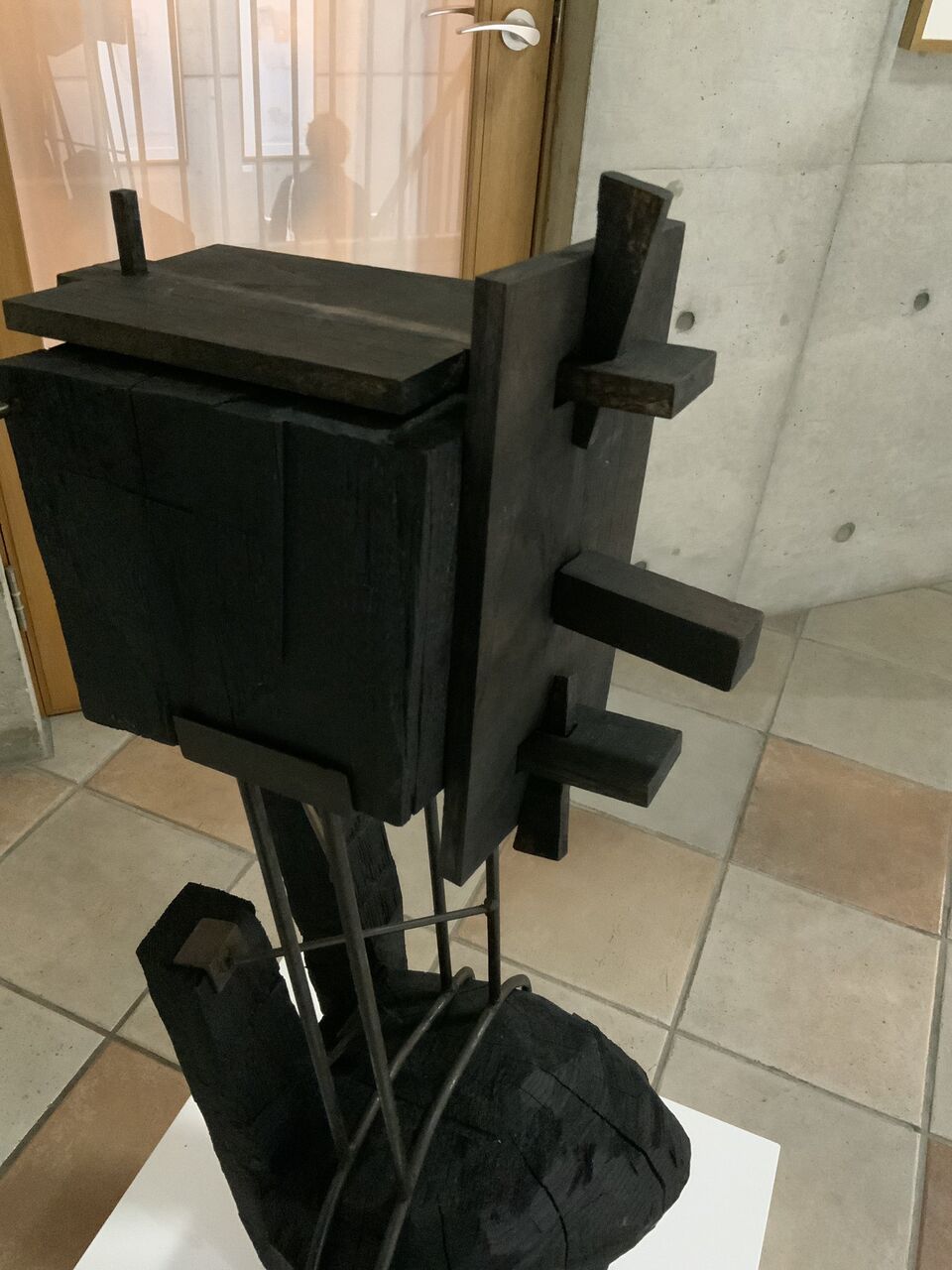 <ときの忘れものの佐藤研吾さんの個展。展示台の上に直置きされた真っ黒な木のオブジェたち。そのマッスとキュービックな幾何学性は、一見、ジャック・リプシッツの初期の作品のようなキュビスム彫刻を想起させたが、中央には四角い空洞が彫り抜かれており、ピンホールカメラを表していることが分かる