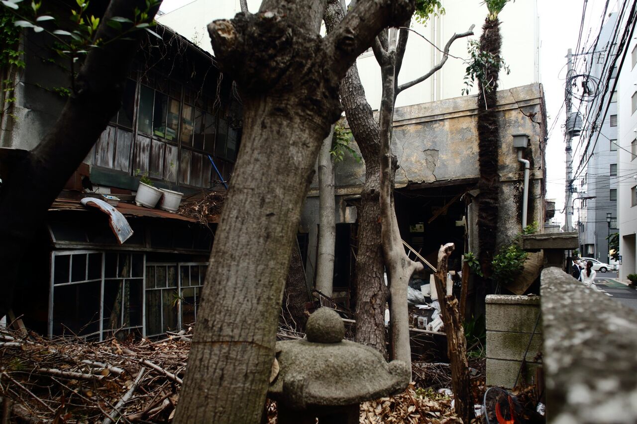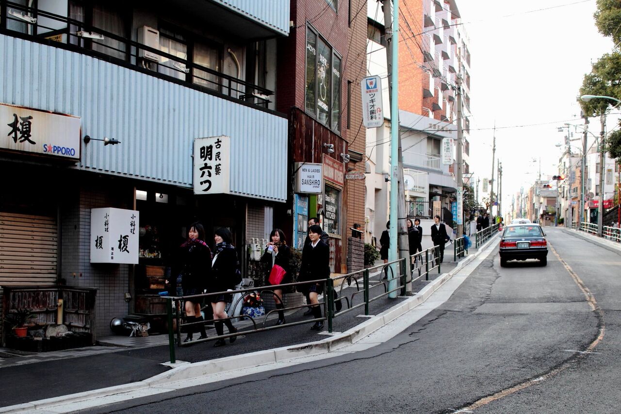 須藤公園の東側の低地には、大正や昭和の面影のある街並みがかすかに残っていて、道なりに歩いていくと、やがて不忍通りに出る(ph11、12)。