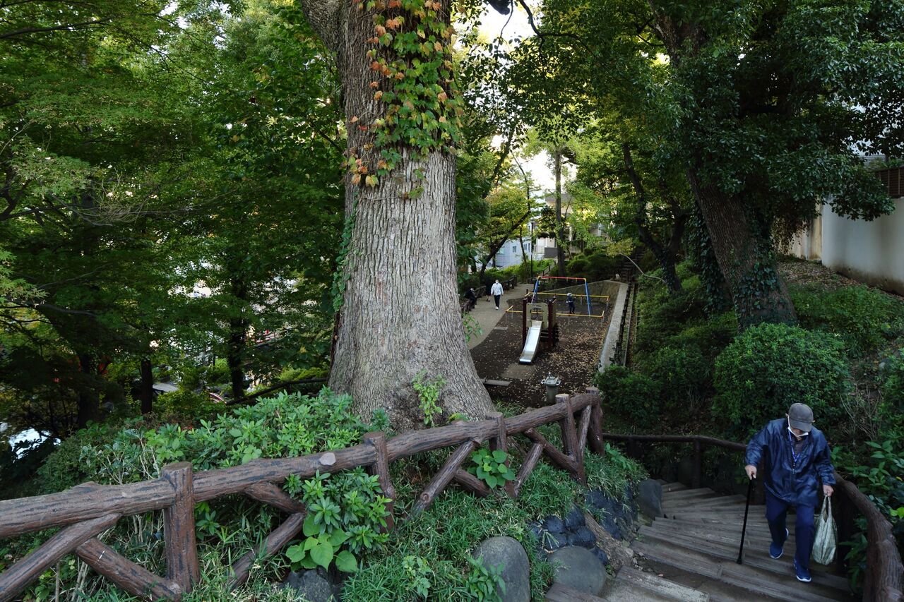 ph9 須藤公園。らせん状の石段と楠の大木。千駄木3-4-16。2021.11.11
