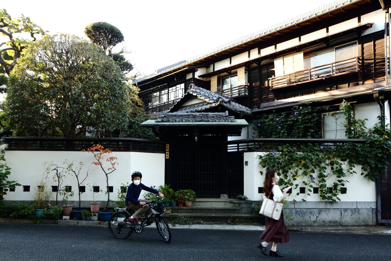 ph8 須藤公園の北西側。瓦葺木造二階建ての大きな家。千駄木3-6。2021.11.11