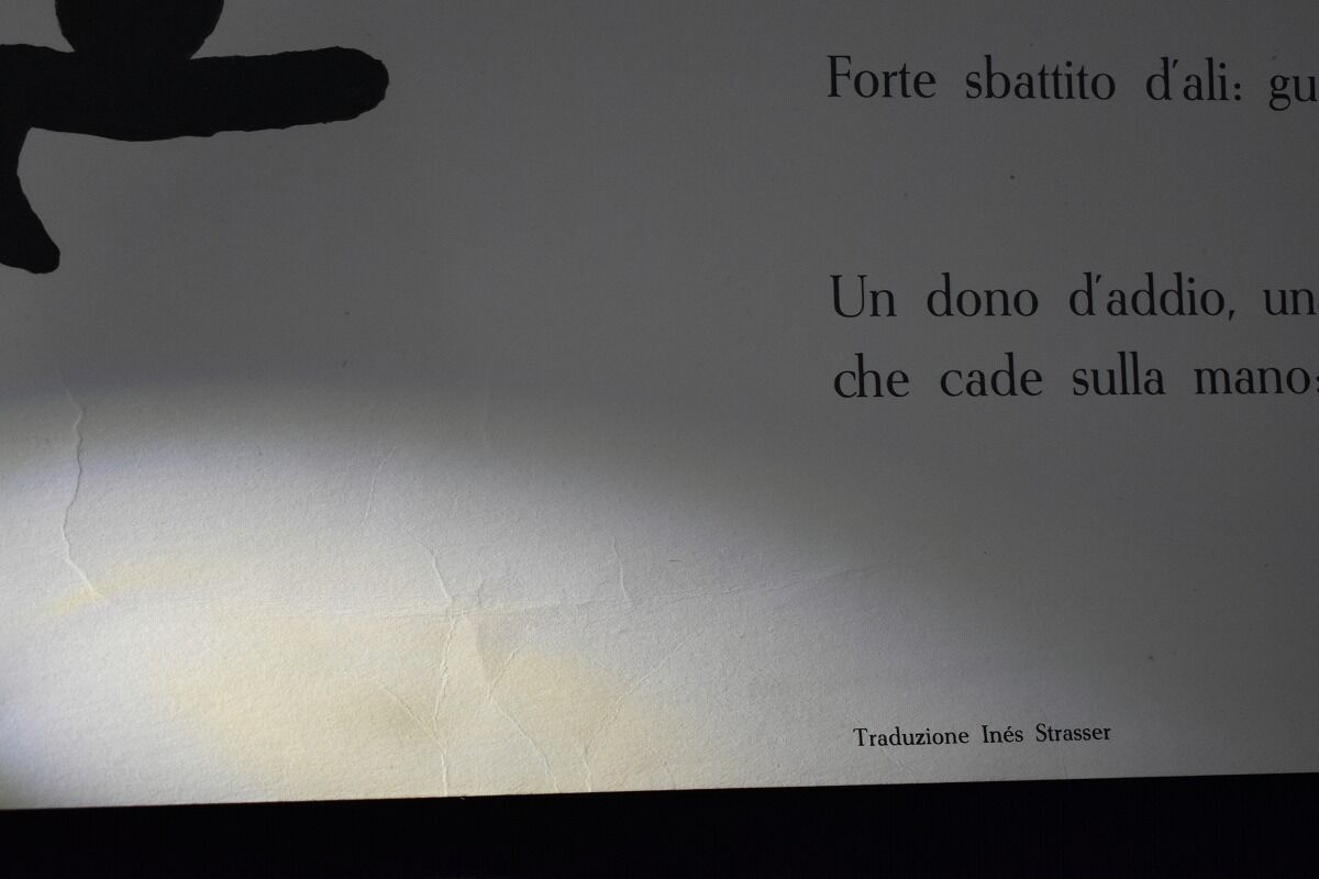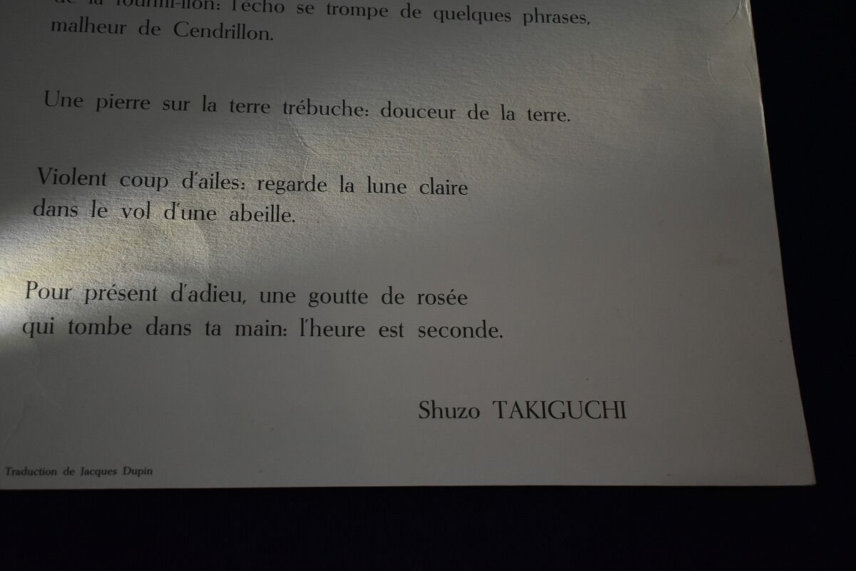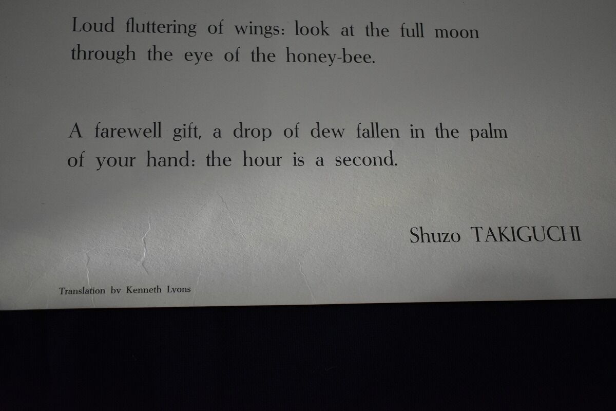 展覧会を見終わって画廊の倉庫を整理していると、なんとこの挿画入りの詩があるではありませんか。さらに大事に保管していたリトグラフポスターもある。これは皆様にご紹介しなければ!