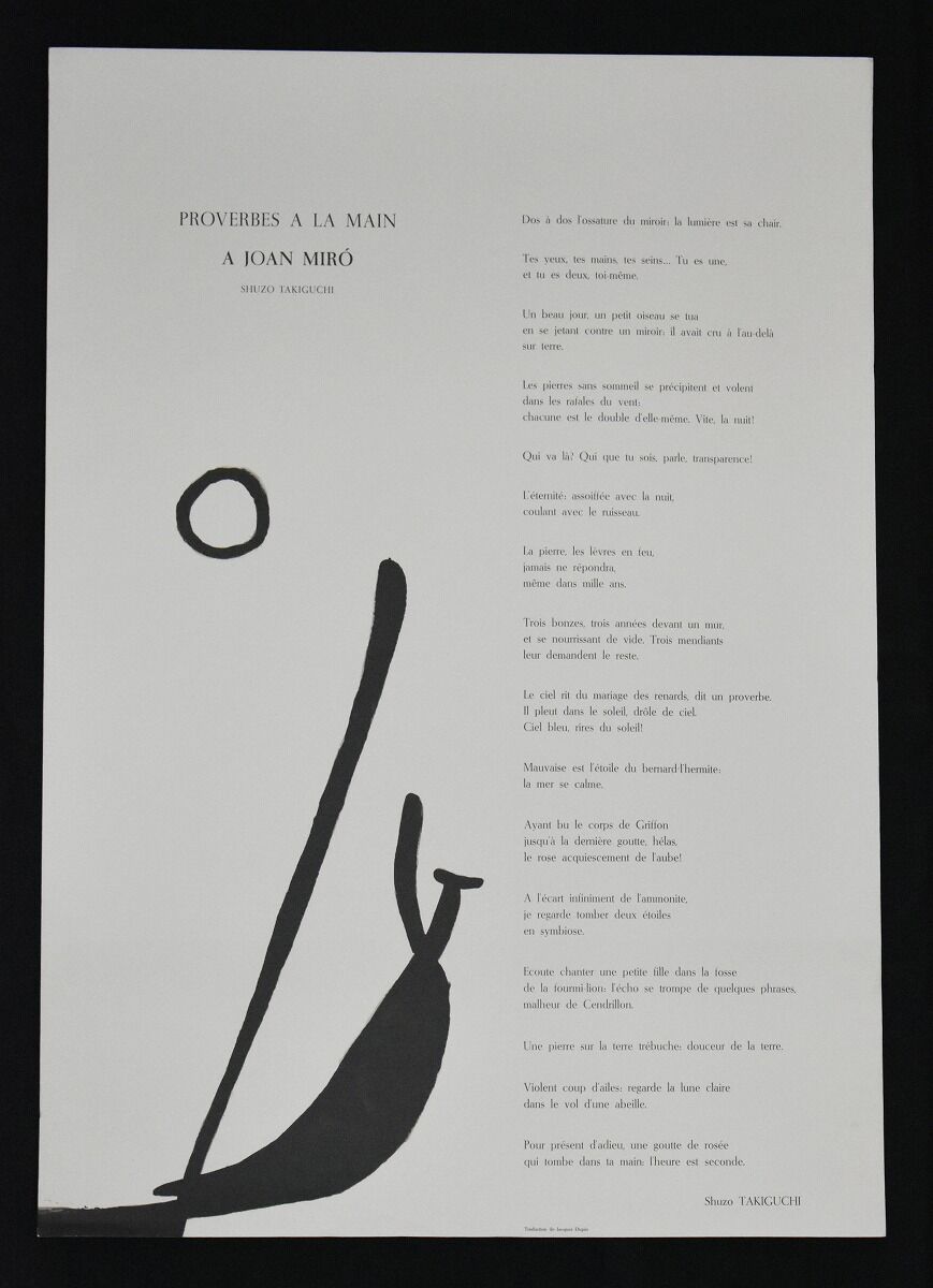 今回のブログでは「ミロ × 瀧口修造 手づくり諺」リトグラフとポスター特別頒布会を開催します。以下の貴重なリトグラフを計5点、先着順にて頒布します。