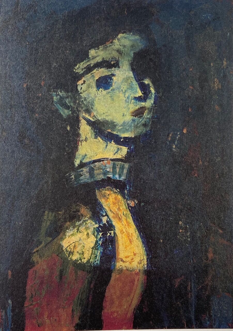 だが、現在、松本竣介がジョルジュ・ルオーから影響を受けたとされるのは定説になっている。例えば2012年に開催された『生誕100年 松本竣介展』の図録の中で長門佐季が「初期作品の特徴である骨太の輪郭線は、モディリアニーやルオー(1871-1958)からの影響と指摘される」(注3)と書いている。従って、誰がそう言いだしたのかは一旦置くとして、二科会初入選の頃の松本竣介の画風は、ジョルジュ・ルオーから影響を受けたというのは定説ということになる。