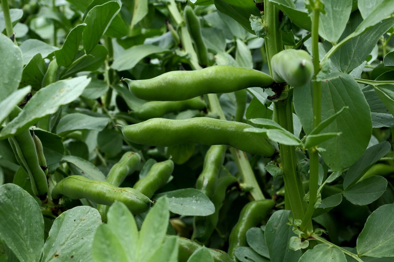 <ソラマメのサヤを触ると実が膨らんでいました。